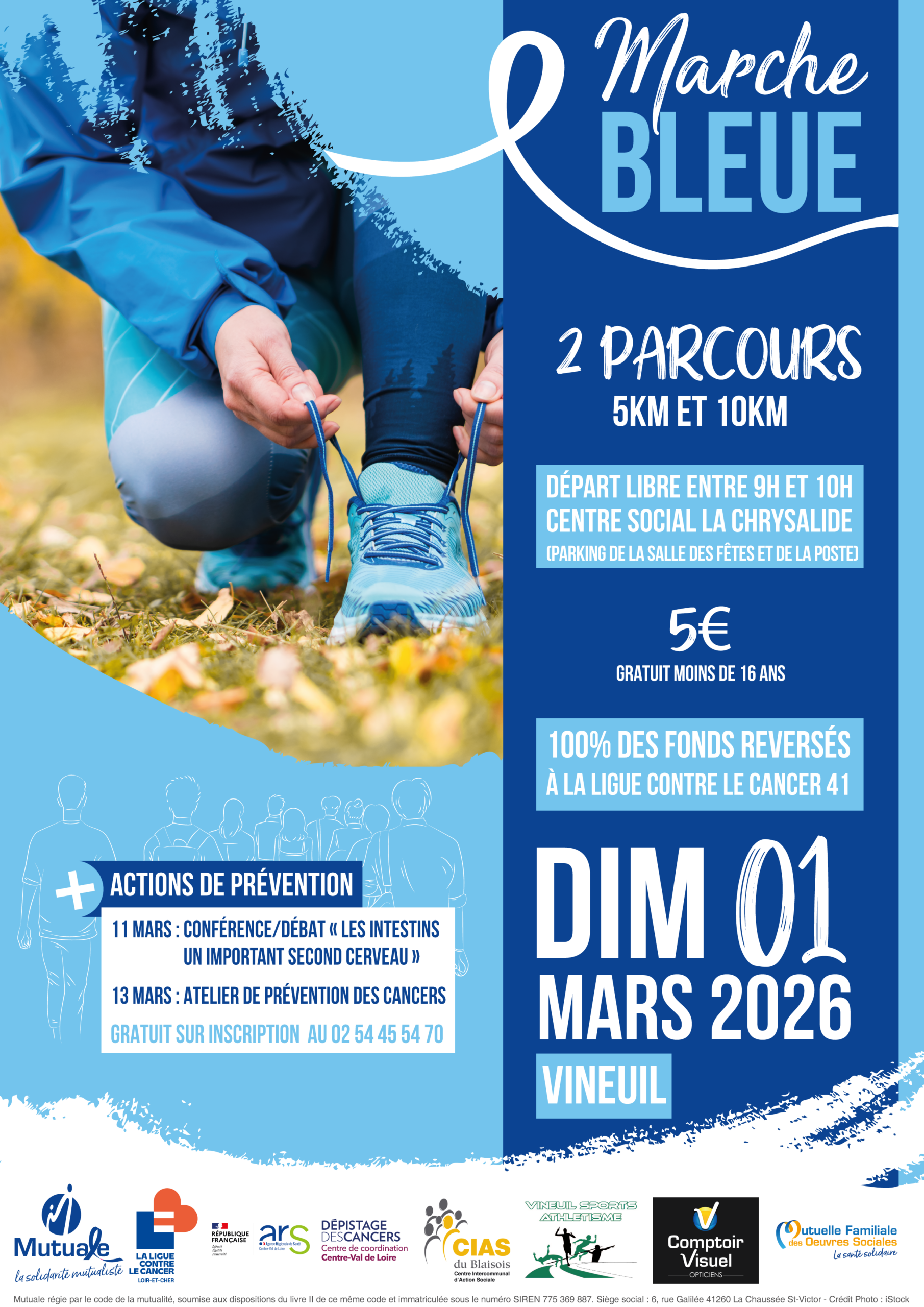 => Dimanche 1er mars – Marche bleue au départ du Centre social la Chrysalide à Vineuil. Départ libre entre 9h00 et 10h00. Plus d’information ici