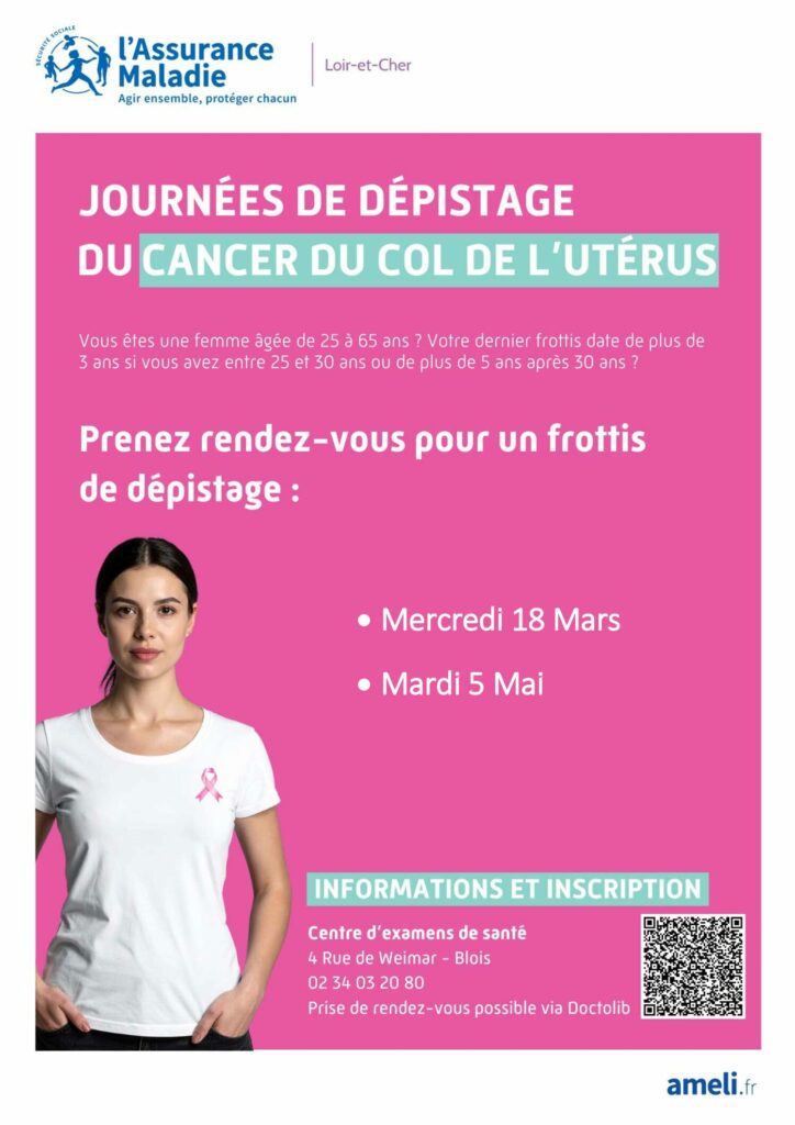 Mercredi 18 mars 2026 ou mardi 5 mai 2026 au Centre d’examens de santé – 4 rue Weimar à BLOIS (41)