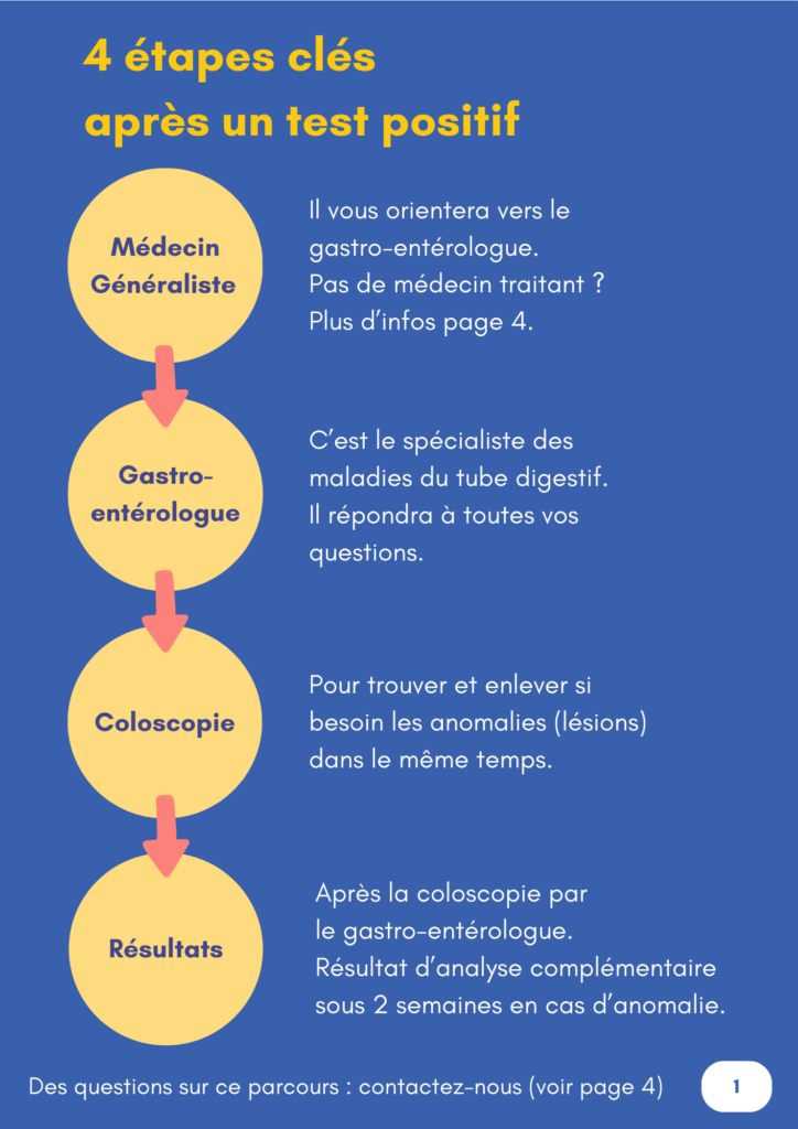 • Suivi modifié 1 : ajout de l’envoi d’un courrier précoce 1 semaine après le résultat positif avec un document d’information sur la coloscopie
